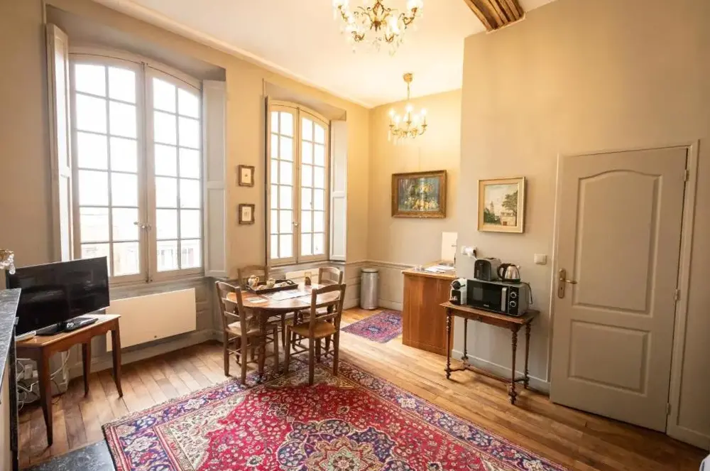 L'Hôtel de Panette, côté cour vous accueille dans un bâtiment du 18ème siècle situé dans le Centre-ville de Bourges, à 200 mètres de la cathédrale Saint-Etienne. Il vous propose des studios et appartements décorés individuellement et dotés d'une connexion Wi-Fi gratuite. Donnant sur la ville, les logements sont revêtus de parquet et ornés de poutres apparentes. Ils comprennent tous une kitchenette équipée d'un four micro-ondes, d'un réfrigérateur et d'un coin repas. Vous trouverez des commerces et des restaurants dans le Centre-ville, et le palais Jacques-Cœur vous attend à 400 mètres. L'Hôtel de Panette, côté cour est situé à 1,7 km de la gare de Bourges et à 4 km de son aéroport.